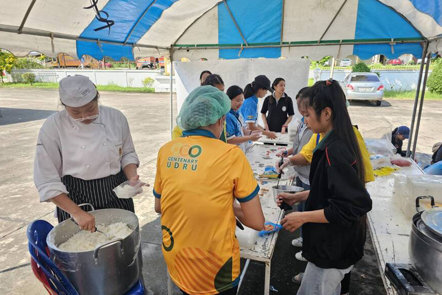 ผศ.ดร.คณิศรา ธัญสุนทรสกุล อธิการบดีมหาวิทยาลัยราชภัฏอุดรธานี กล่าวว่า จากสถานการณ์น้ำท่วมที่จังหวัดหนองคายและจังหวัดบึงกาฬ มหาวิทยาลัยมีได้ประสานกับจังหวัด และนายอำเภอพื้นที่ศรีเชียงใหม่ ในการตั้งโรงครัวประกอบอาหาร ซึ่งมีความจำเป็นมาก ใช้สถานที่ในวัดธาตุคำ อ.ศรีเชียงใหม่ จ.หนองคาย โดยได้สั่งการศูนย์ฝึกประสบการณ์วิชาชีพฯ ให้จัดเตรียมวัตถุดิบ เครื่องปรุง และอุปกรณ์ขนย้ายไปตั้งโรงครัว ตั้งแต่วันนี้ (16 ก.ย.67) และจะมีบุคลากร อาจารย์ และนักศึกษา สลับกันไปช่วยประกอบอาหาร