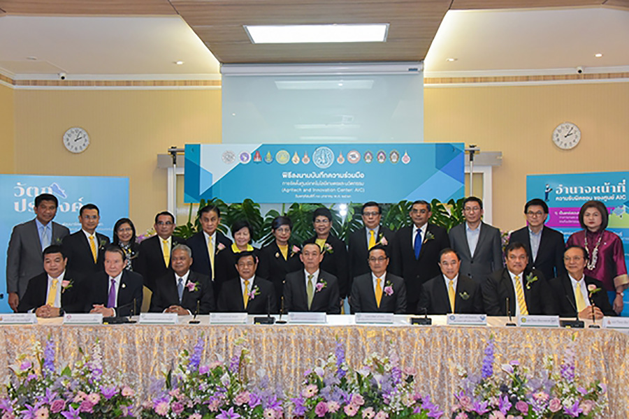 กระทรวงเกษตรฯ ขับเคลื่อนนโยบายหลักที่สำคัญต่าง ๆ อาทิ การตลาดนำ การผลิต การพัฒนาฐานข้อมูลด้านการเกษตร (Big data) การช่วยเหลือปัญหาความเดือดร้อนเร่งด่วน การพัฒนาคุณภาพการผลิตและมาตรฐานสินค้าเกษตร นอกจากนี้ ยังได้มุ่งเน้นการขับเคลื่อนการเกษตรสมัยใหม่ ตามนโยบาย Thailand 4.0 คือ การประยุกต์ใช้เทคโนโลยี นวัตกรรมและภูมิปัญญาในการพัฒนาสินค้าเกษตร เพื่อสร้างมูลค่าเพิ่มและสร้างคุณภาพและมาตรฐานของสินค้าเกษตรให้ปลอดภัยต่อผู้ผลิตและผู้บริโภค เป็นการทำงานแบบบูรณาการร่วมกันใน 6 ภาคี คือ กระทรวงเกษตรและสหกรณ์ กระทรวงพาณิชย์ กระทรวงอุตสาหกรรม ภาคเกษตรกร ภาควิชาการ และภาคเอกชน โดยมีรูปแบบโครงสร้าง 1 จังหวัด 1 ศูนย์ ซึ่งตั้งอยู่ที่มหาวิทยาลัยที่ได้รับการคัดเลือก โดยในวันนี้เป็นการลงนามบันทึกความร่วมมือการจัดตั้งศูนย์ AIC ร่วมกับ 14 มหาวิทยาลัย ได้แก่ 1. มหาวิทยาลัยเกษตรศาสตร์ 2. มหาวิทยาลัยเชียงใหม่ 3. มหาวิทยาลัยขอนแก่น 4. มหาวิทยาลัยสงขลานครินทร์ 5. มหาวิทยาลัยบูรพา 6. มหาวิทยาลัยแม่ฟ้าหลวง 7. มหาวิทยาลัยเทคโนโลยีราชมงคลกรุงเทพ 8. มหาวิทยาลัยเทคโนโลยีราชมงคลธัญบุรี 9. มหาวิทยาลัยนเรศวร 10. มหาวิทยาลัยราชภัฏเพชรบุรี 11. มหาวิทยาลัยราชภัฏร้อยเอ็ด 12. มหาวิทยาลัยราชภัฏอุดรธานี 13. มหาวิทยาลัยวลัยลักษณ์ และ 14. มหาวิทยาลัยหอการค้าไทย โดยแบ่งการขับเคลื่อนเป็น 12 ศูนย์ AIC ประจำจังหวัด และ 2 ศูนย์แห่งความเป็นเลิศ