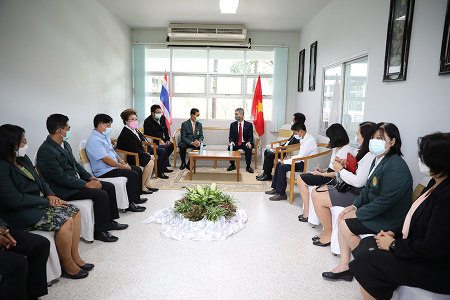 วันที่ 18 พฤศจิกายน 2564 ณ อาคารศูนย์การศึกษานานาชาติ ผศ.จรูญ ถาวรจักร์ อธิการบดี ให้การต้อนรับ H.E. Mr. Chu Duc Dung กงสุลใหญ่สาธารณรัฐสังคมนิยมเวียดนาม ณ จังหวัดขอนแก่น ที่ให้เกียรติมาเยือน และพบปะกับนักศึกษาชาวเวียดนาม โดยมีคณะผู้บริหาร อาจารย์ บุคลากร รวมทั้งผู้แทนสมาคมเวียดนาม จ.อุดรธานี และนักศึกษาเวียดนาม ร่วมให้การต้อนรับ ในโอกาสนี้ H.E. Mr. Chu Duc Dung ได้เยี่ยมชมศูนย์เวียดนามศึกษา แลกเปลี่ยนความคิดเห็นเรื่องความร่วมมือในอนคต และพูดคุยกับนักศึกษาเวียดนามที่มารอต้อนรับด้วย