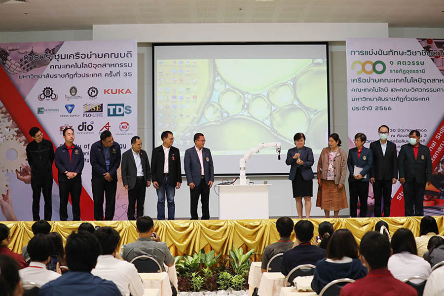 วันที่ 27 มิถุนายน 2566 เวลา 09.00 น. รศ.ดร.สุนทร สุทธิบาก คณบดีคณะเทคโนโลยี กล่าวรายงาน เปิดงานการแข่งขันทักษะวิชาชีพนักศึกษา เครือข่ายคณะเทคโนโลยีอุตสาหกรรม คณะเทคโนโลยีและคณะวิศวกรรมศาสตร์มหาวิทยาลัยราชภัฏทั่วประเทศ ประจำปีการศึกษา 2566 โดยได้รับเกียรติจาก ผศ.ดร.คณิศรา ธัญสุนทรสกุล อธิการบดี มหาวิทยาลัยราชภัฏอุดรธานี เป็นประธานในการเปิดงานในครั้งนี้ พร้อมทั้งเยี่ยมชมการใช้แขนกลโรบอทในสถานที่จัดงาน โดยจัดการแข่งขันระหว่างวันที่ 27 – 28 มิถุนายน 2566 ณ อาคารวิศวกรรมศาสตร์ เฉลิมพระเกียรติฯ คณะเทคโนโลยี มหาวิทยาลัยราชภัฏอุดรธานี