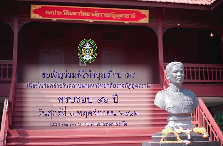 ขอเชิญร่วมพิธีทำบุญตักบาตร เนื่องในวันคล้ายวันสถาปนา มหาวิทยาลัยราชภัฏอุดรธานี