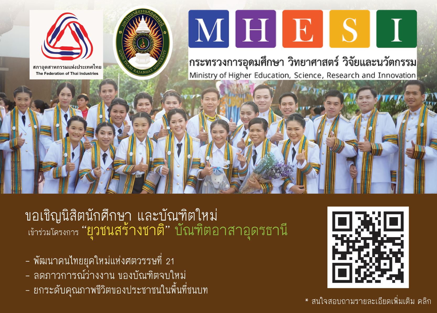 ขอเชิญนิสิตนักศึกษา และบัณฑิตใหม่ เข้าร่วมโครงการ "ยุวชนสร้างชาติ" บัณฑิตอาสาอุดรธานี