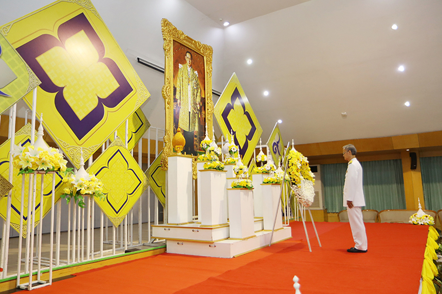 จากนั้นเวลา 08.30 น. ดร.วิบูล เป็นสุข รองอธิการบดี พร้อมด้วย คณะผู้บริหาร อาจารย์ นักศึกษา บุคลากร ร่วมประกอบพิธีวางพวงมาลา หน้าพระบรมฉายาลักษณ์ พระบาทสมเด็จพระบรมชนกาธิเบศร มหาภูมิพลอดุลยเดชมหาราช บรมนาถบพิตร และยืนสงบนิ่งเป็นเวลา 89 วินาที เพื่อน้อมรำลึกถึงพระมหากรุณาธิคุณ อันหาที่สุดมิได้ ที่พระองค์ทรงมีต่อชาวราชภัฏทั้งมวล โดยทรงพระราชทานนาม “ราชภัฏ” ซึ่งแปลว่า คนของพระราชา ให้แก่วิทยาลัยครูทั่วประเทศ จากนั้นทรงโปรดเกล้าฯ ให้ยกฐานะวิทยาลัยครูเป็นสถาบันราชภัฏ และพระราชทานพระราชลัญจกรประจำพระองค์ ให้เป็นตราสัญลักษณ์ ประจำสถาบัน จนกระทั่งได้รับการยกฐานะให้เป็นมหาวิทยาลัย ชาวมหาวิทยาลัยราชภัฏทั้งมวล พร้อมสืบสานพระราชปณิธาน ในการเป็นสถาบันอุดมศึกษาของท้องถิ่น เพื่อยกระดับการศึกษา และพัฒนาท้องถิ่นอย่างยั่งยืน