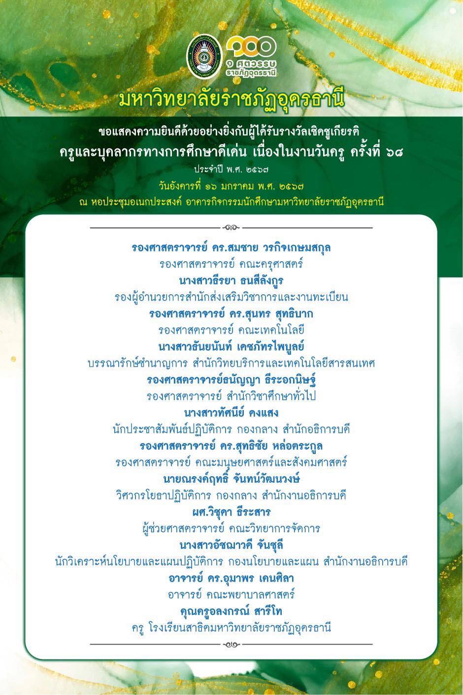 รางวัลเชิดชูเกียรติ ครูและบุคลากรทางการศึกษาดีเด่น ครั้งที่ 68