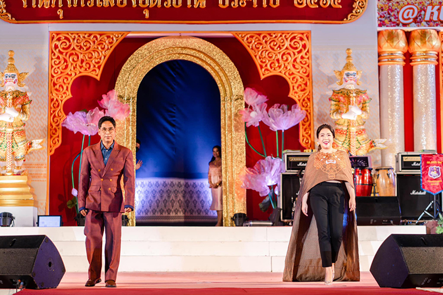 วันที่ 7 ธันวาคม 2565 ผศ.ดร.ชาติชาย ม่วงปฐม รองอธิการบดี และผศ.ดร.ณัฏฐานุช เมฆรา รองผู้อำนวยการสำนักศิลปะและวัฒนธรรม เป็นตัวแทนมหาวิทยาลัยราชภัฏอุดรธานี ร่วมงานเดินแบบผ้าไทย ณ เวทีกลางงานทุ่งศรีเมือง จังหวัดอุดรธานี โดยชุดที่สวมใส่เป็นชุดที่ออกแบบโดยผศ.ดร.กนิษฐา เรืองวรรณศักดิ์ รองผู้อำนวยการ สำนักศิลปะและวัฒนธรรม ภายใต้แนวความคิด zero waste