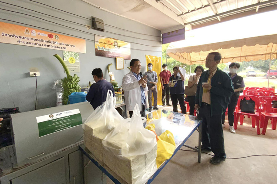 วันที่ 14 ก.พ. 2566 คณะอนุกรรมการติดตามโครงการภายใต้แผนงานสร้างความเข้มแข็งแก่เศรษฐกิจฐานราก ลงพื้นที่เพื่อติดตามความก้าวหน้าและถอดบทเรียนจาก โครงการสำคัญที่ขับเคลื่อนเศรษฐกิจฐานรากในระดับพื้นที่ ครั้งที่ 5 โดยสำนักงานปลัดกระทรวงการอุดมศึกษา วิทยาศาสตร์ วิจัยและนวัตกรรม ได้นำเสนอโครงการยกระดับเศรษฐกิจและสังคมรายตำบลแบบบูรณาการ (1 ตำบล 1 มหาวิทยาลัย) โดยเลือกพื้นที่การดำเนินงาน “โครงการถ่ายทอดเทคโนโลยีและสร้างผลิตภัณฑ์จากอ้อย" ตำบลตาดทอง อำเภอศรีธาตุ จังหวัดอุดรธานี ของมหาวิทยาลัยราชภัฏอุดรธานี โดยมี ดร.เอกราช ดีนาง รองอธิการบดี และ รศ.ดร.สุนทร สุทธิบาก คณบดีคณะเทคโนโลยี พร้อมด้วยคณะทำงาน ให้การต้อนรับและนำเสนอผลการดำเนินงาน โดยกลุ่มเกษตรกรแปรรูปอ้อยอินทรีย์วิสาหกิจชุมชนเกษตรอินทรีย์วิถีไทยบ้านนางาม ได้ปรับเปลี่ยนจากการปลูกอ้อยส่งโรงงานทั่วไปมาเป็นการปลูกอ้อยอินทรีย์ ซึ่งผลิตภัณฑ์ที่ได้จากการแปรรูปอ้อยอินทรีย์ สามารถเพิ่มมูลค่าได้มากกว่าร้อยละ 50 จากการแปรรูปอ้อยทั่วไป โดยมหาวิทยาลัยราชภัฏอุดรธานี ได้นำองค์ความรู้ในการพัฒนานวัตกรรมที่มีความปลอดภัย มีกำลังการผลิตสูง ลดการจ้างงานกำลังคน พร้อมทั้งได้ส่งเสริมอบรมให้ความรู้ด้านการจัดการธุรกิจ การทำบัญชี เพื่อเป็นการลดรายจ่าย ให้กลุ่มมีรายได้เพิ่มมากขึ้น และสามารถสร้างอาชีพในชุมชนได้อย่างยั่งยืน
