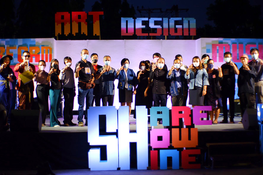 พิธีเปิดโครงการ Share Show Shine art design perform ซึ่งจัดโดยสาขาวิชาทัศนศิลป์ , ออกแบบผลิตภัณฑ์ , ศิลปะการแสดง , ดนตรี