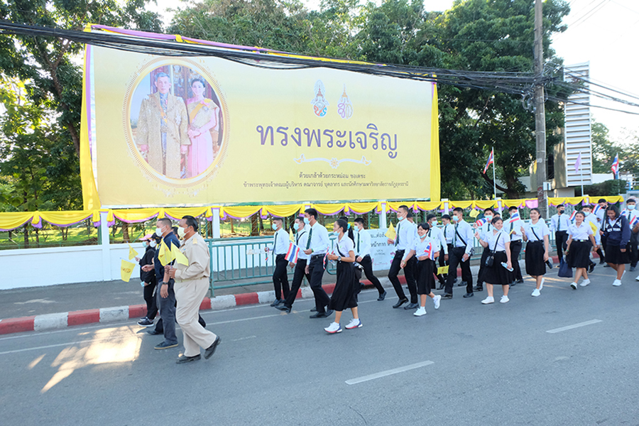 บุคลากร นักศึกษา ม.ราชภัฏอุดร เฝ้าฯ รับเสด็จ ‘ในหลวง-พระราชินี’ ในโอกาสเสด็จพระราชดำเนินทรงเปิดอาคารศาลเยาวชนและครอบครัว จ.อุดรธานี